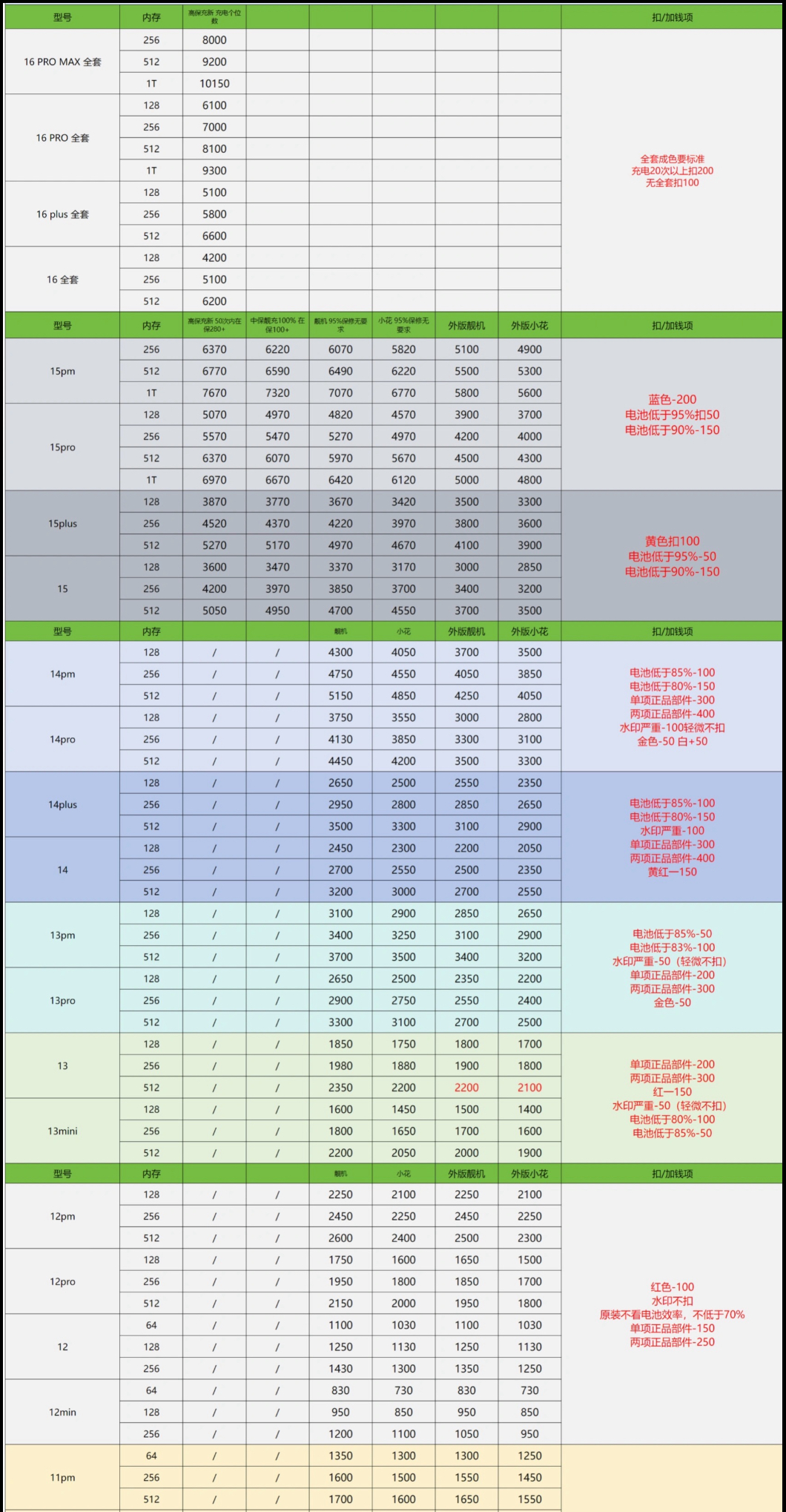 内部回收价(更新于2024年12月)